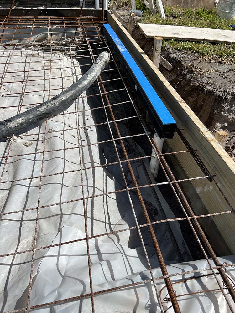 Concrete slab pour with trench drainage cut out